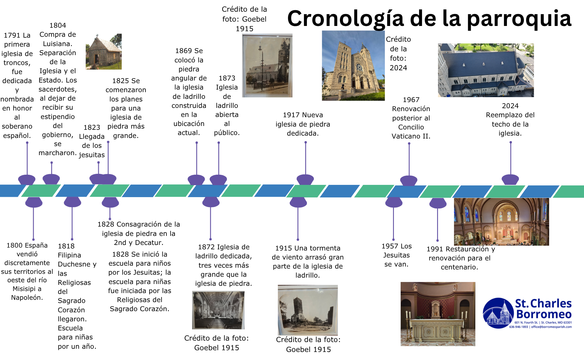 Hace más de 200 años, la Parroquia de San Carlos Borromeo comenzó como una humilde cabaña de troncos; con el tiempo, se convirtió en la parroquia que conocemos hoy. Nuestra parroquia es más que una simple cabaña de troncos o la hermosa estructura que vemos hoy: sus habitantes son la vida de nuestra iglesia.